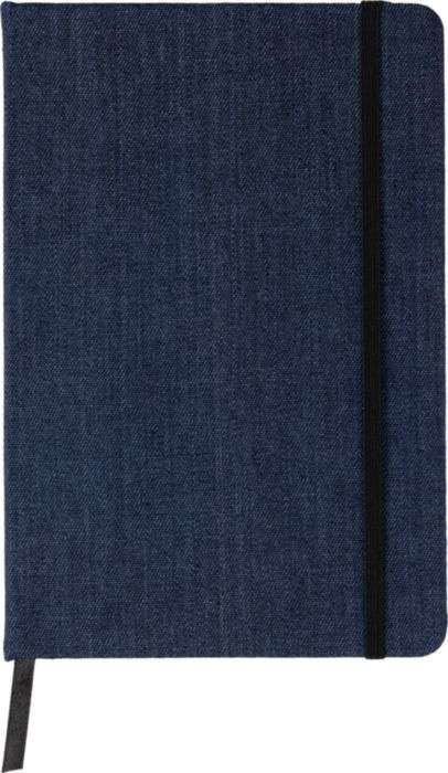 Taccuino in Denim (Jeans), formato +/- A5, 80 pagine a righe, elastico e segnalibro in nero