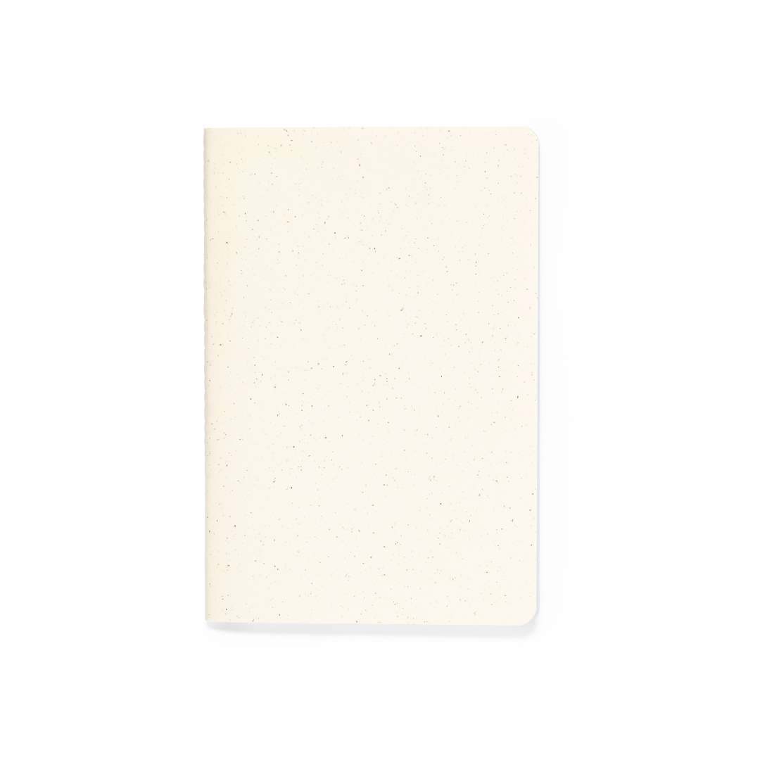 Taccuino con copertina in cartone riciclato e finitura cucita in tinta sul dorso. All'interno 60 pagine lisce e bianche. Presentato in busta individuale riciclata.