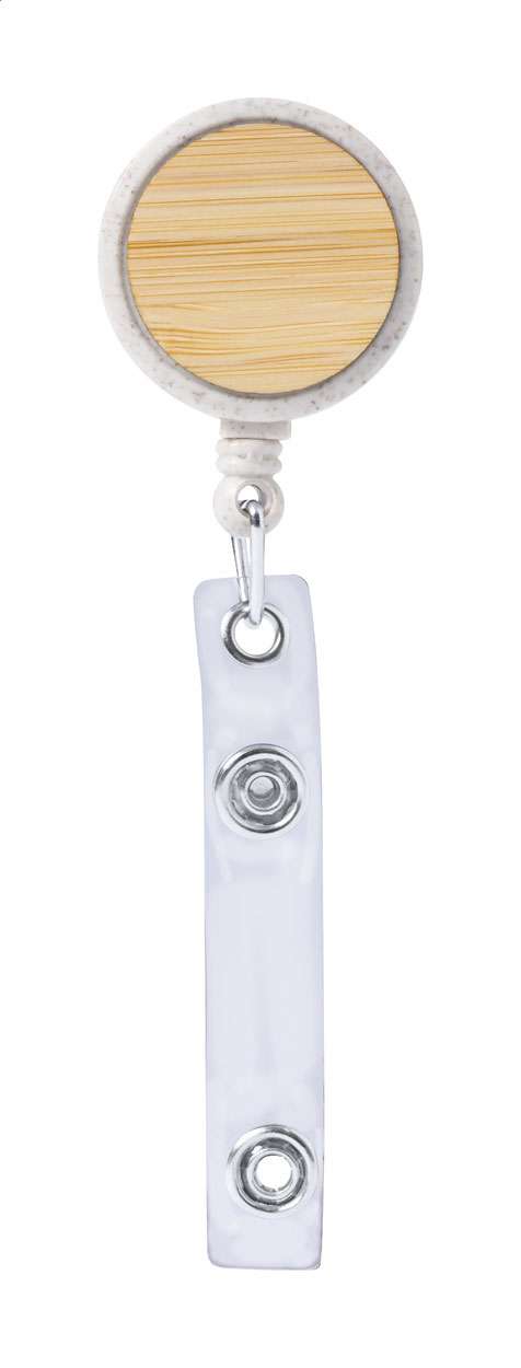 Porta pass in ecologica plastica di paglia di grano e bambù con chiusura a pressione, filo telescopico e clip in metallo.