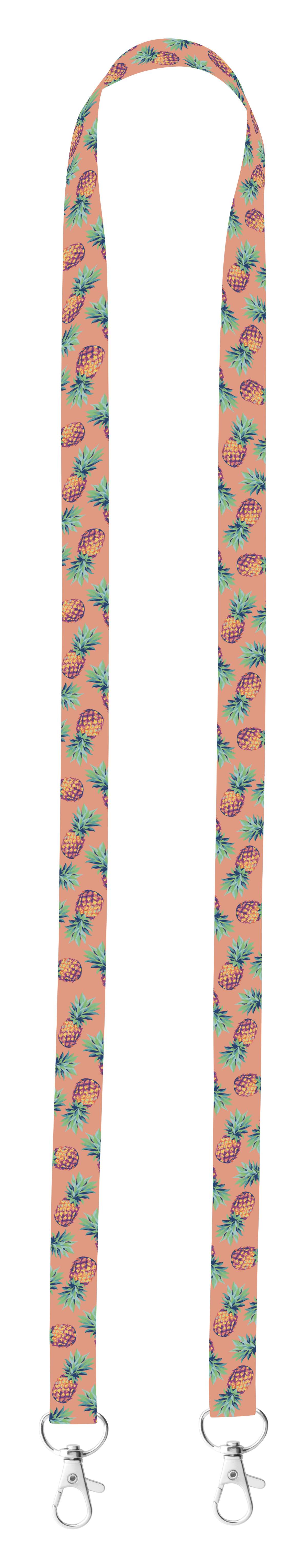 Lanyard in poliestere largo 15 mm con 2 moschettoni metallici. Con grafica stampata in sublimazione su entrambi i lati. Prodotto su richiesta. MOQ: 100 pezzi.