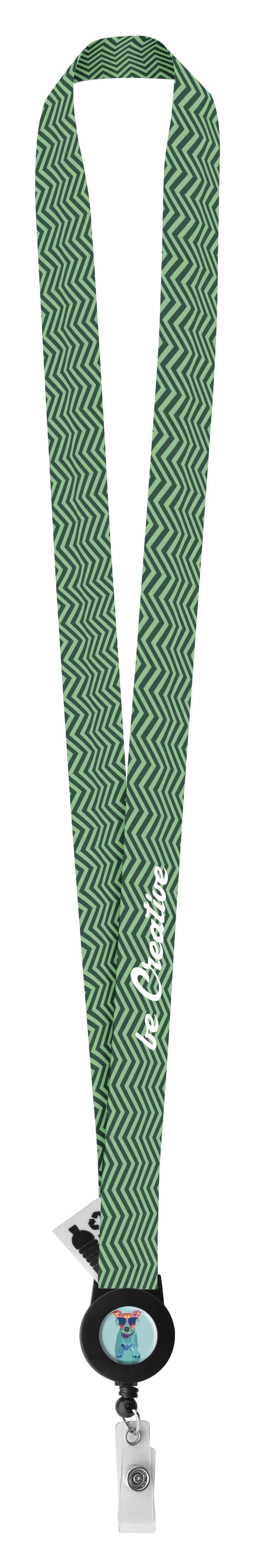 Lanyard in RPET personalizzabile, con porta pass telescopico, stampa in sublimazione su entrambi i lati. MOQ: 100pz