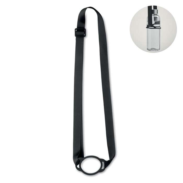 Cordino con portabicchieri per evento, in silicone (diametro 6 cm) con fibbia regolabile in PP. Cordino largo 20 mm.