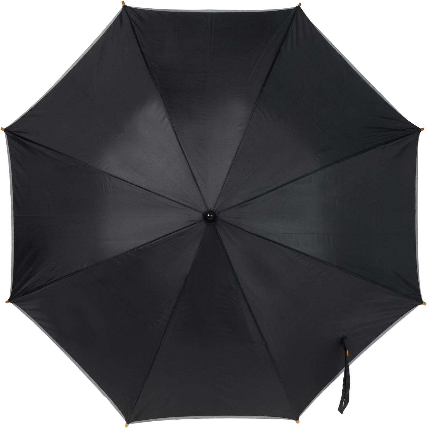 Ombrello con apertura automatica, bordo riflettente, manico in legno, in poliestere 190 T