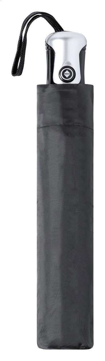 Ombrello pieghevole antivento con 8 pannelli completamente automatico (aperto/chiuso). Con fusto in metallo, telaio in metallo/fibra di vetro, manico in plastica e fodera in colore coordinato. Poliestere 190T.