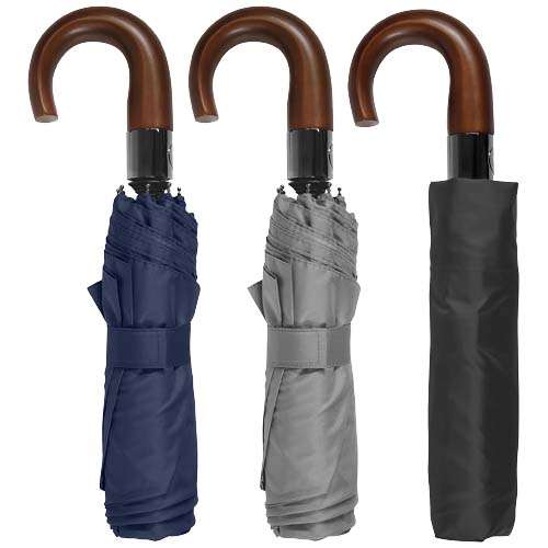L'ombrello pieghevole Pepin è realizzato al 100% in poliestere riciclato, è pratico e resistente ed è caratterizzato da un sistema di apertura automatica che ne facilita l'uso. La struttura in fibra di vetro con asta in metallo e punte rinforzate garantisce una resistenza duratura, mentre il manico curvo in legno scuro aggiunge un tocco raffinato ed elegante. Consegnato con una custodia abbinata. Dimensione: Ø 95 x H 63 cm. Prodotto in Europa.