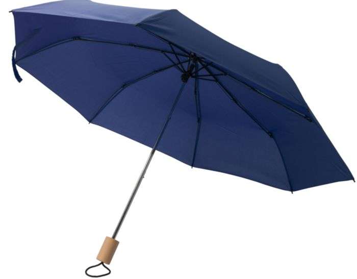Ombrello pieghevole, manuale, otto pannelli, chiusura in velcro, manico in legno di rovere, con custodia, in rPET 190T