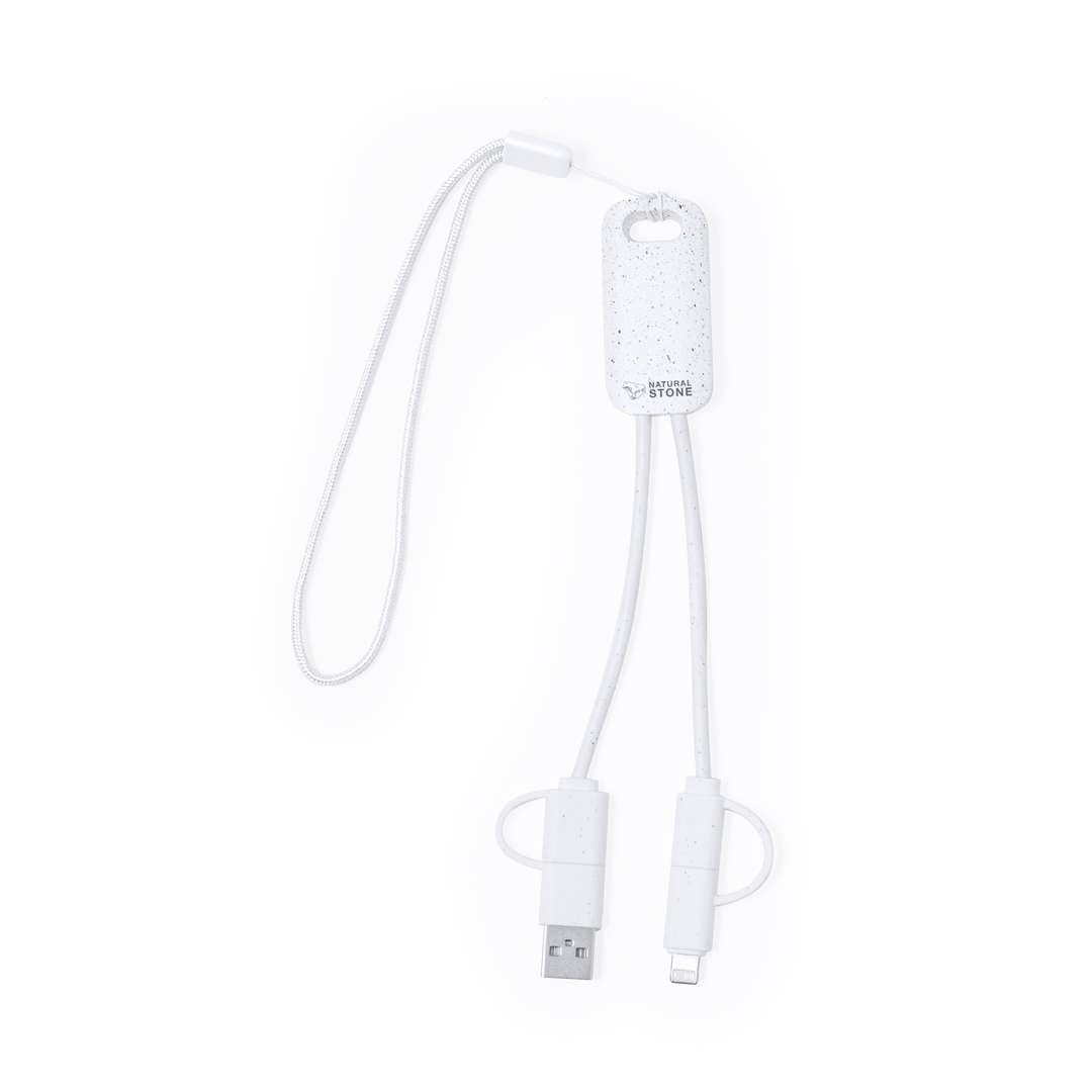Cavo di ricarica realizzato con estratti di pietra naturale in combinazione con ABS resistente. Con connessioni di ingresso di tipo C/USB e uscite di tipo C, Lightning e Micro USB. 5V DC 2,4A. Confezionato singolarmente in una scatola dal design kraft.Realizzato con estratti di pietra naturale, che contribuiscono a ridurre l'uso della plastica, oltre a fornire una finitura liscia e resistente.