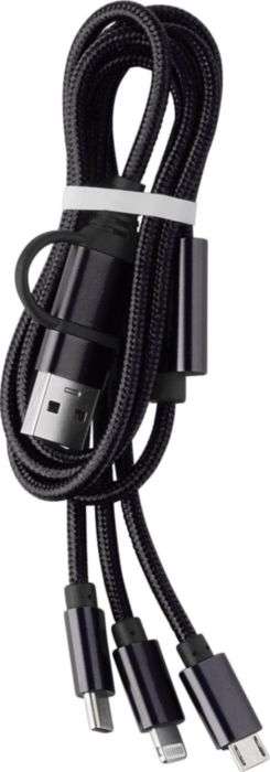 Cavo per la ricarica in nylon, comprende connettori USB e USB di tipo C, fili in rame al 100%. Confezionato singolarmente in una scatola di cartone.