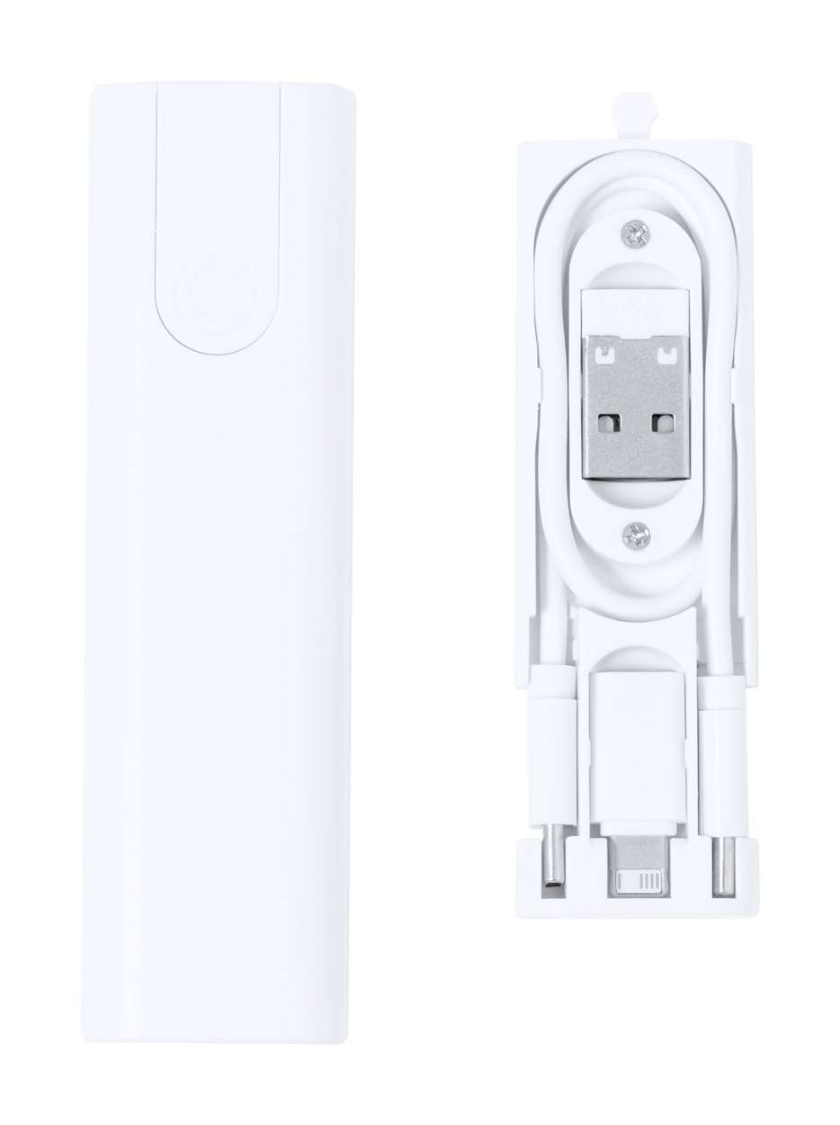 Set di cavi di alimentazione USB con custodia in plastica ABS e funzione portacellulare. Con estrattore per scheda SIM e connettori micro USB, USB, USB-C e Lightning.