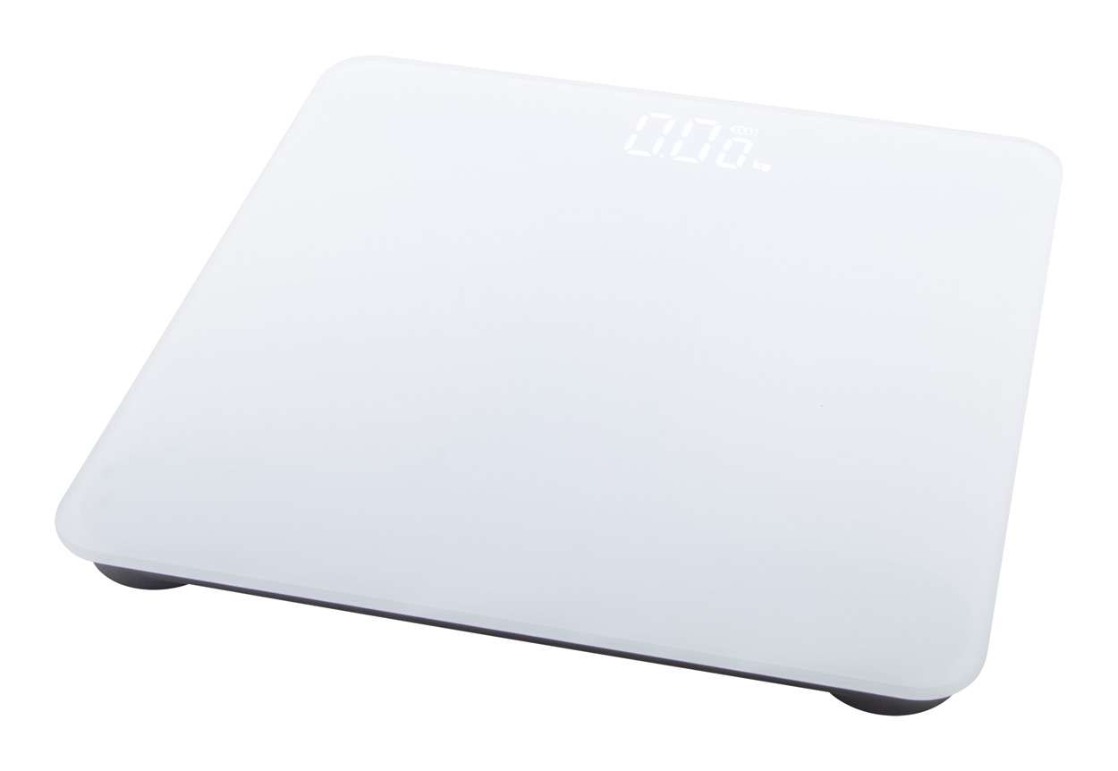 Bilancia pesapersone digitale con display retroilluminato e piatto in vetro temperato. Portata: 180 kg, scala di 0,1 kg, unità di misura: kg/lb. Con 2 batterie AAA.