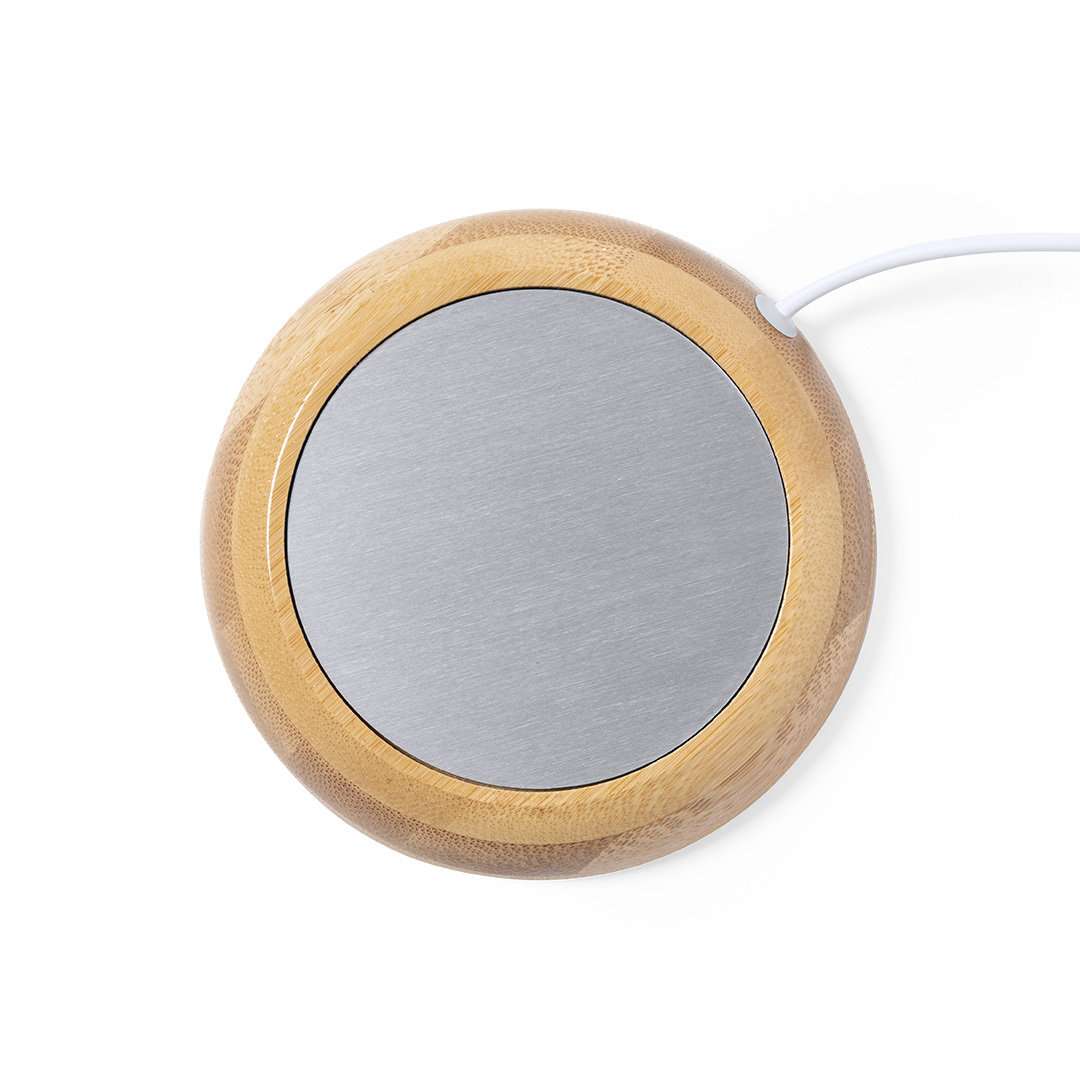 Scaldatazze della linea natura, realizzato in bambù. Connessione USB e superficie metallica appositamente progettata per mantenere il calore, con base antiscivolo. Confezionato in una scatola individuale di eco-design. Manuale d'istruzioni disponibile in inglese e spagnolo.