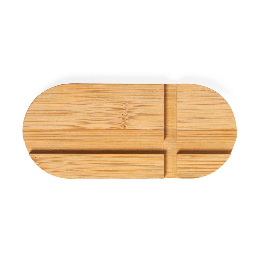 Originale e semplice supporto della linea natura per smartphone e tablet. Fatto di bambù tagliato naturalmente. Confezionato in un'attraente scatola individuale con un design ecologico