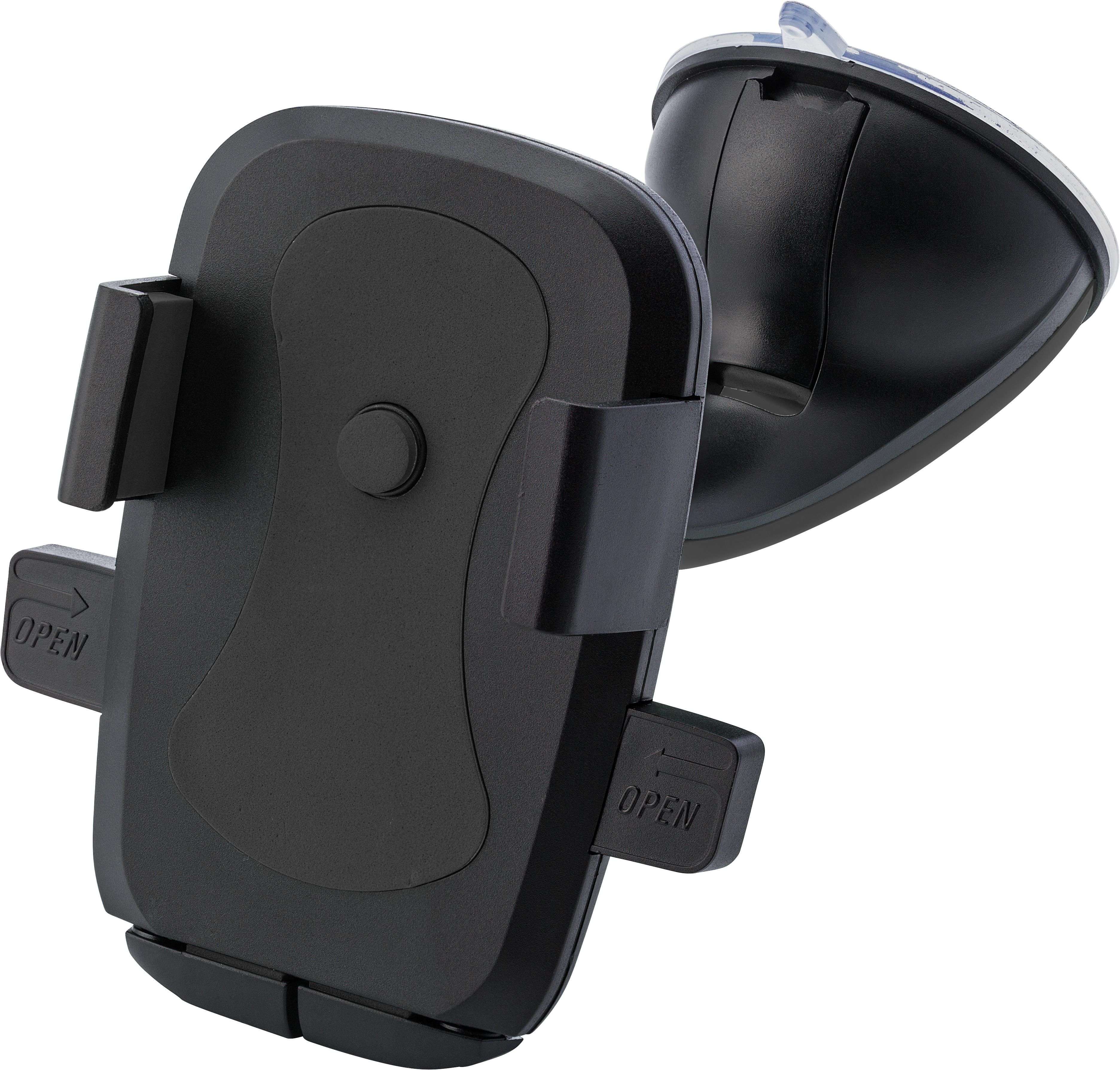 Supporto auto per smartphone regolabile, con ventosa che permette l'applicazione al cruscotto oppure al vetro. Il supporto si puó estendere fino a 8,1 cm, premendo il pulsante il supporto si ritrae, in plastica