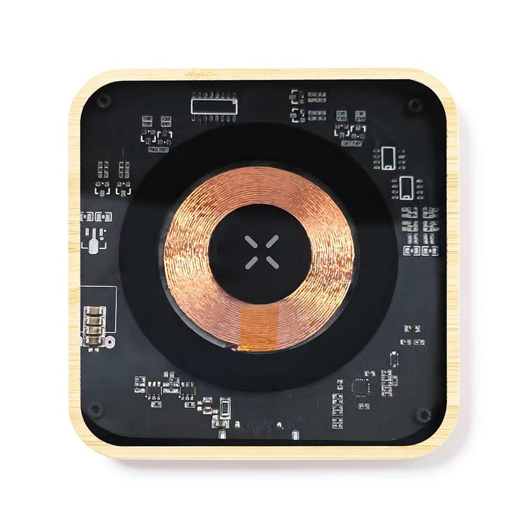 Caricatore wireless da 15W con un design originale e una superficie trasparente che permette di vedere i componenti interni del dispositivo. Con base quadrata in bambù e compatibile con i dispositivi con tecnologia Qi. Connessione di tipo C, con manuale di istruzioni in inglese e spagnolo. Presentato in una scatola dal design kraft individuale.Materiali come il bambù favoriscono l'uso di materie prime naturali, riducendo le emissioni inquinanti. Proviene da una pianta altamente resistente e versatile, con una crescita e una rigenerazione rapida, rappresentando un'ottima alternativa all'uso del legno tradizionale.Prodotto secondo gli standard RoHS e in conformità ai seguenti requisiti di sicurezza:Sistema di protezione dal surriscaldamento.Sistema di protezione dal sovraccarico.Sistema di blocco per evitare cortocircuiti.