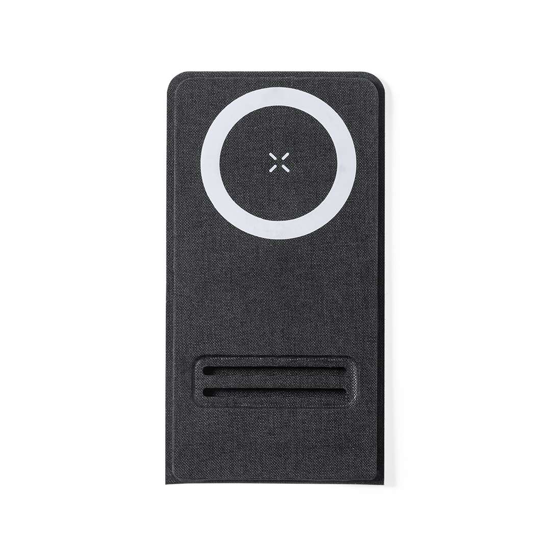 Caricatore wireless da 15 W. Realizzato in resistente poliestere 300D, con sistema di fissaggio magnetico per poter utilizzare il dispositivo durante la ricarica e anello adesivo incluso. Valido per tutti i dispositivi con tecnologia Magsafe e Qi. Di dimensioni ridotte per un facile trasporto e presentato in unattraente scatola dal design individuale.