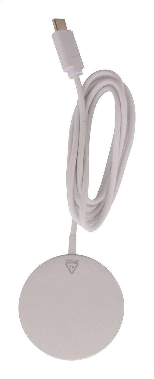 Caricabatterie magnetico wireless veloce (10W), corpo in alluminio riciclato. Compatibile con iPhone® 12 o successivi. Cavo di ricarica USB-C incluso.