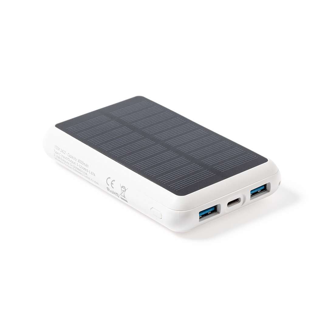 Power bank a ricarica solare ed elevata capacità di carica -8.000 mAh-. Con caricatore wireless integrato da 15W e attacco magnetico per poter utilizzare il dispositivo durante la ricarica. In ABS resistente, con connettore di ingresso e uscita di tipo C + 2 uscite USB. Incluso anello adesivo, valido per tutti i dispositivi con tecnologia Magsafe e Qi. Presentato in una scatola dal design accattivante e personalizzato. Le capacità indicate in tutti i nostri power bank sono reali, poiché tutti incorporano batterie non riciclate di grado A, con una durata di almeno 500 cicli di ricarica e conformi alle normative CE. Inoltre, sono prodotti secondo gli standard RoHS e in conformità ai seguenti requisiti di sicurezza: Sistema di protezione da sovraccarico del power bank. Sistema di protezione completa contro le scariche, che aumenta la durata del power bank. Sistema di blocco per prevenire i cortocircuiti. Sistema di trasferimento costante della carica, in base alla capacità del dispositivo di destinazione.