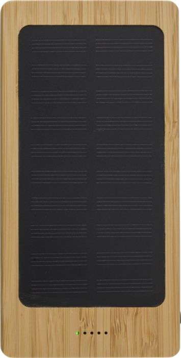 Power Bank solare in bambù, 8.000 mAh, input DC 5V/2A, output DC 5V/2A, include 4 indicatori LED, due porte USB e una porta micro USB, adatto per la maggior parte dei device in commercio
