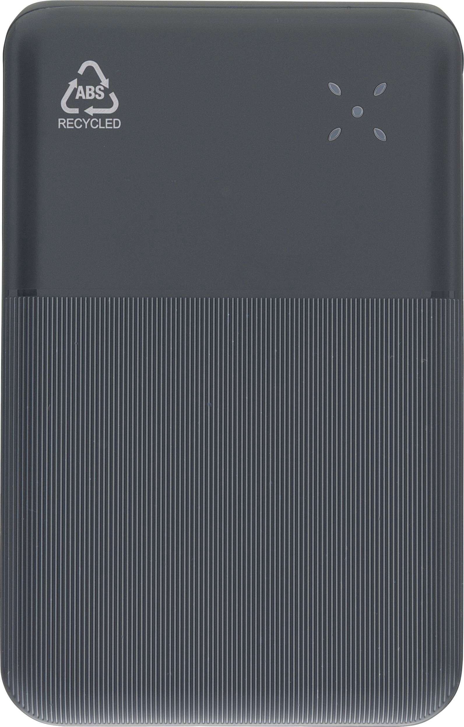 Powerbank in ABS riciclato con batteria Li-ion da 20.000?mAh e ricarica rapida da 22,5W, dispone di ingresso/uscita Type-C, ingresso Type-A e indicatore LED per lo stato della batteria, dotato di protezioni contro surriscaldamento, cortocircuito, sovratensione e sovracorrente, include etichetta sul retro con il logo ABS riciclato. Confezionata singolarmente in una scatola in cartone avana avvolto in carta velina all'interno.