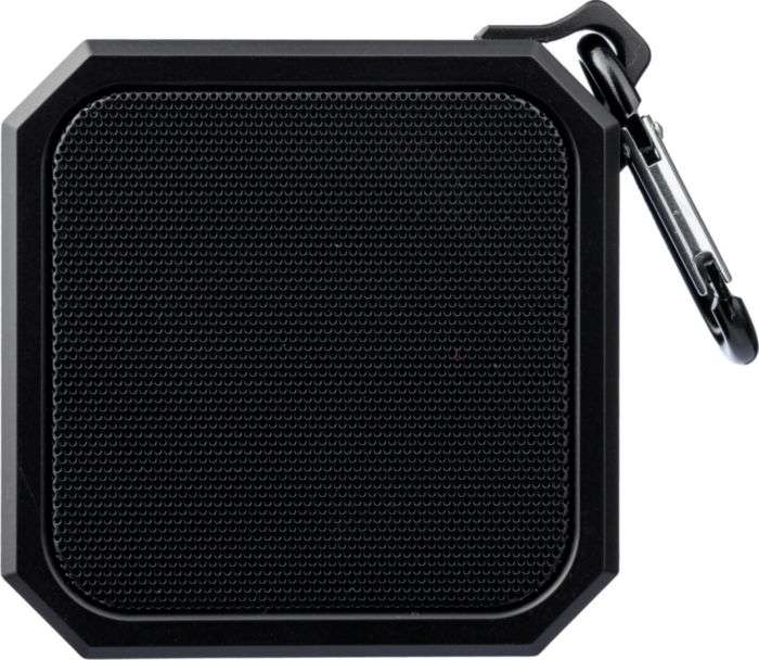Speaker wireless in ABS riciclato, include moschettone e clip in plastica, classificazione IPX4, uscita 3W, ingresso DC 5V, batteria ricaricabile integrata da 300mAh, con 2 ore di autonomia, distanza operativa di 15-20 metri, rapporto segnale/rumore di 87 dB, gamma di frequenza: 100 Hz a 20 kHz, include cavo per la ricarica Type-C da 50 cm, tecnologia di connessione wireless: 5.2, confezionato singolarmente in una scatola in cartone avana