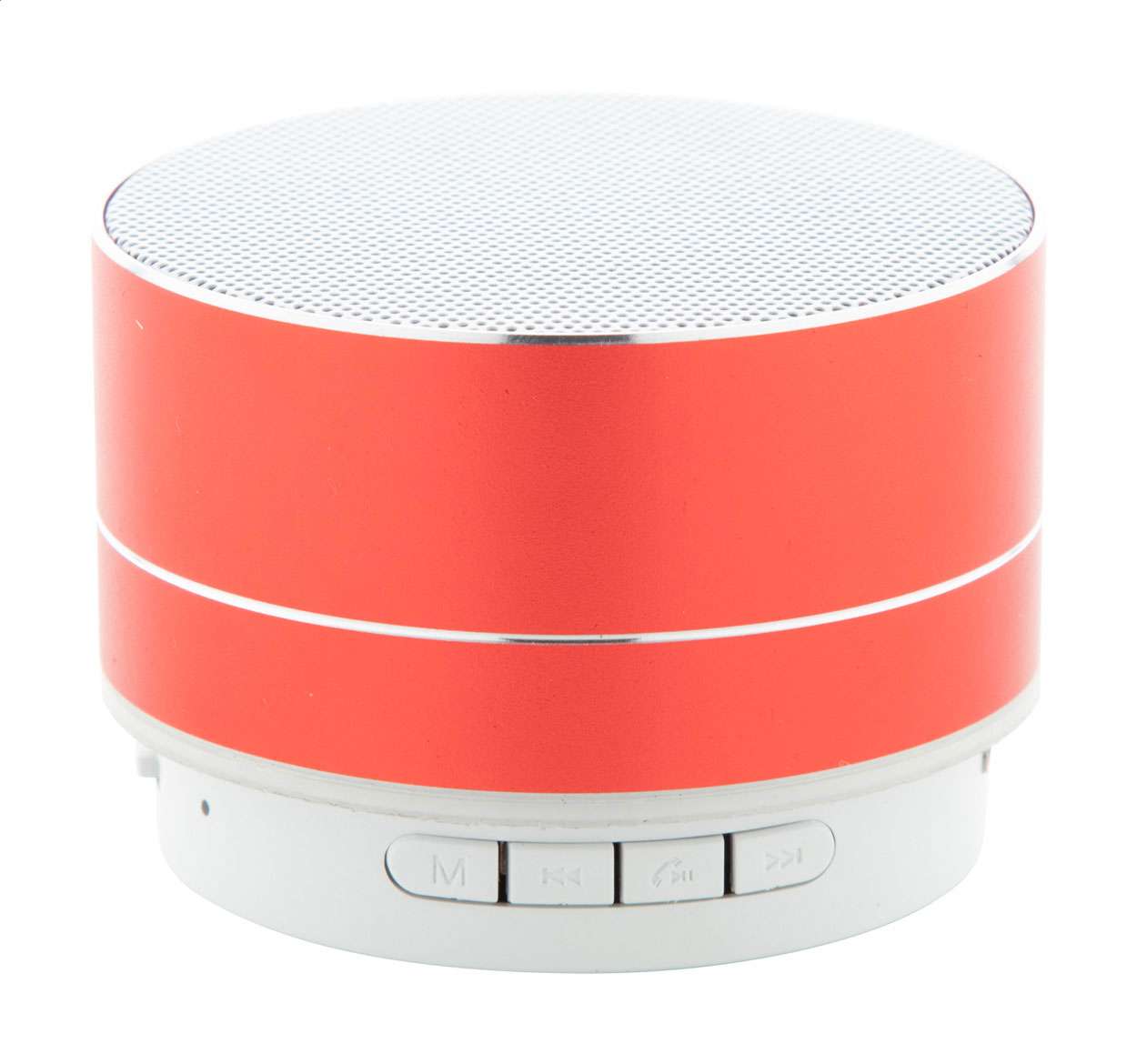 Altoparlante wireless con alloggiamento in alluminio. Con funzioni di chiamata in vivavoce, radio FM e lettore micro SD e batteria ricaricabile integrata. Incluso cavo di ricarica USB.