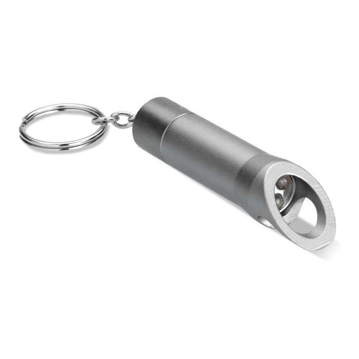 Torcia a LED di metallo con portachiavi e apribottiglie.