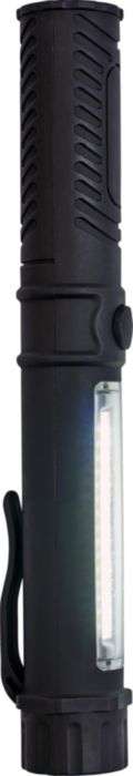Torcia da lavoro in ABS, illuminazione con Led COB (Chip on Board) sull'estremità e sull'impugnatura, batterie incluse