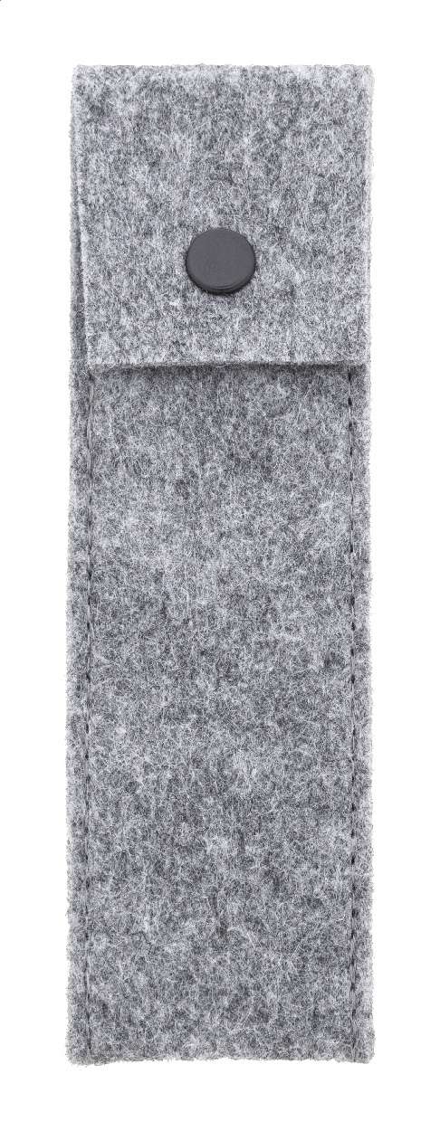 Astuccio in feltro RPET che può contenere 2 penne e chiusura a bottone.