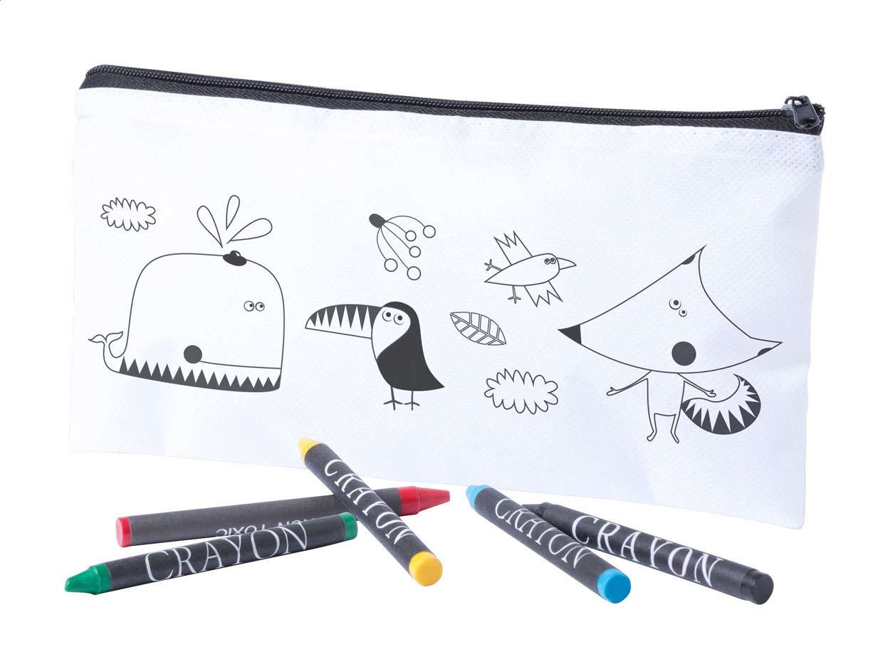 Astuccio in tessuto non tessuto con 5 pastelli colorati.