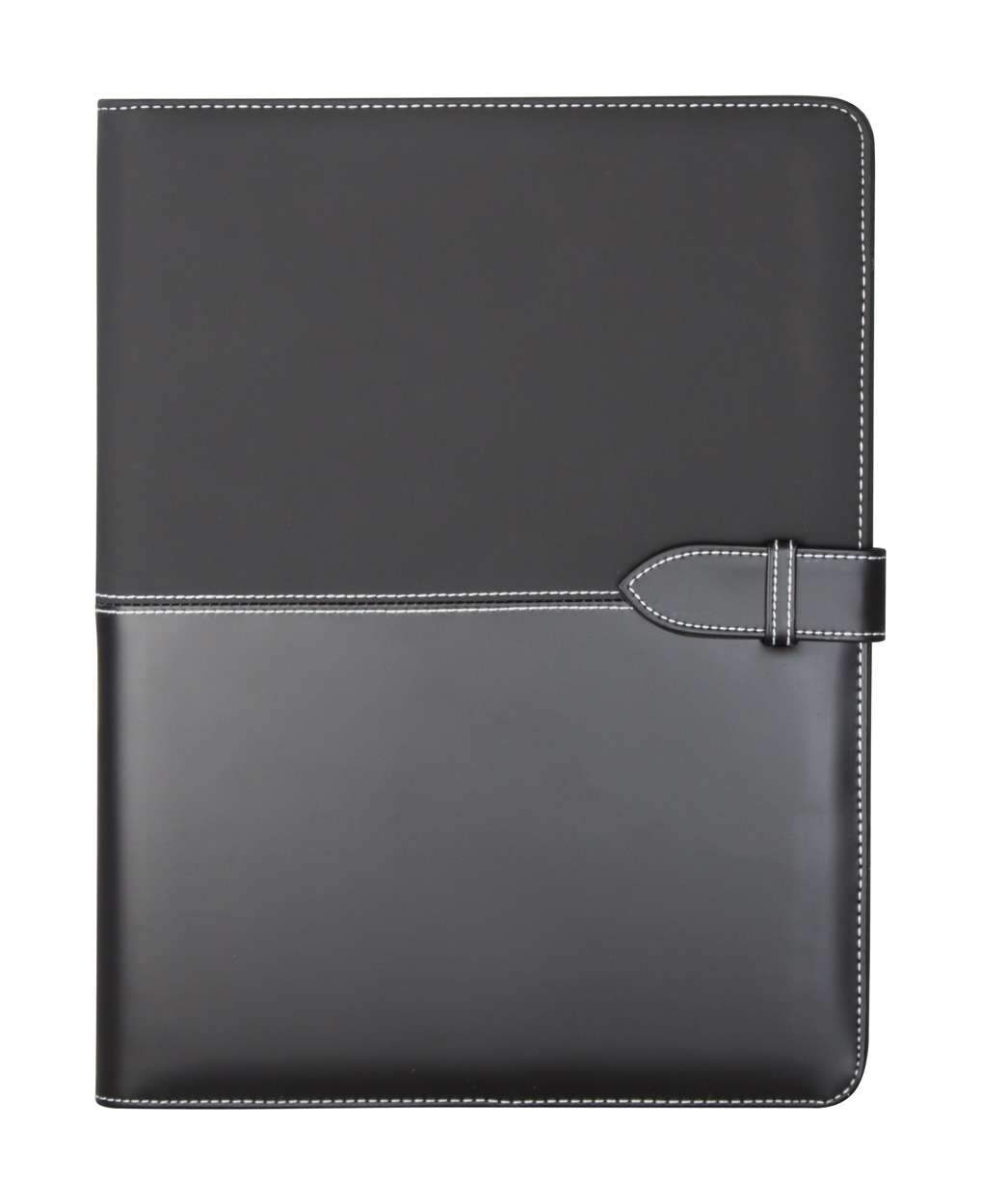 Cartella formato A4 in pelle PU, con blocco da 20 fogli a righe, portapenne e porta biglietti da visita.