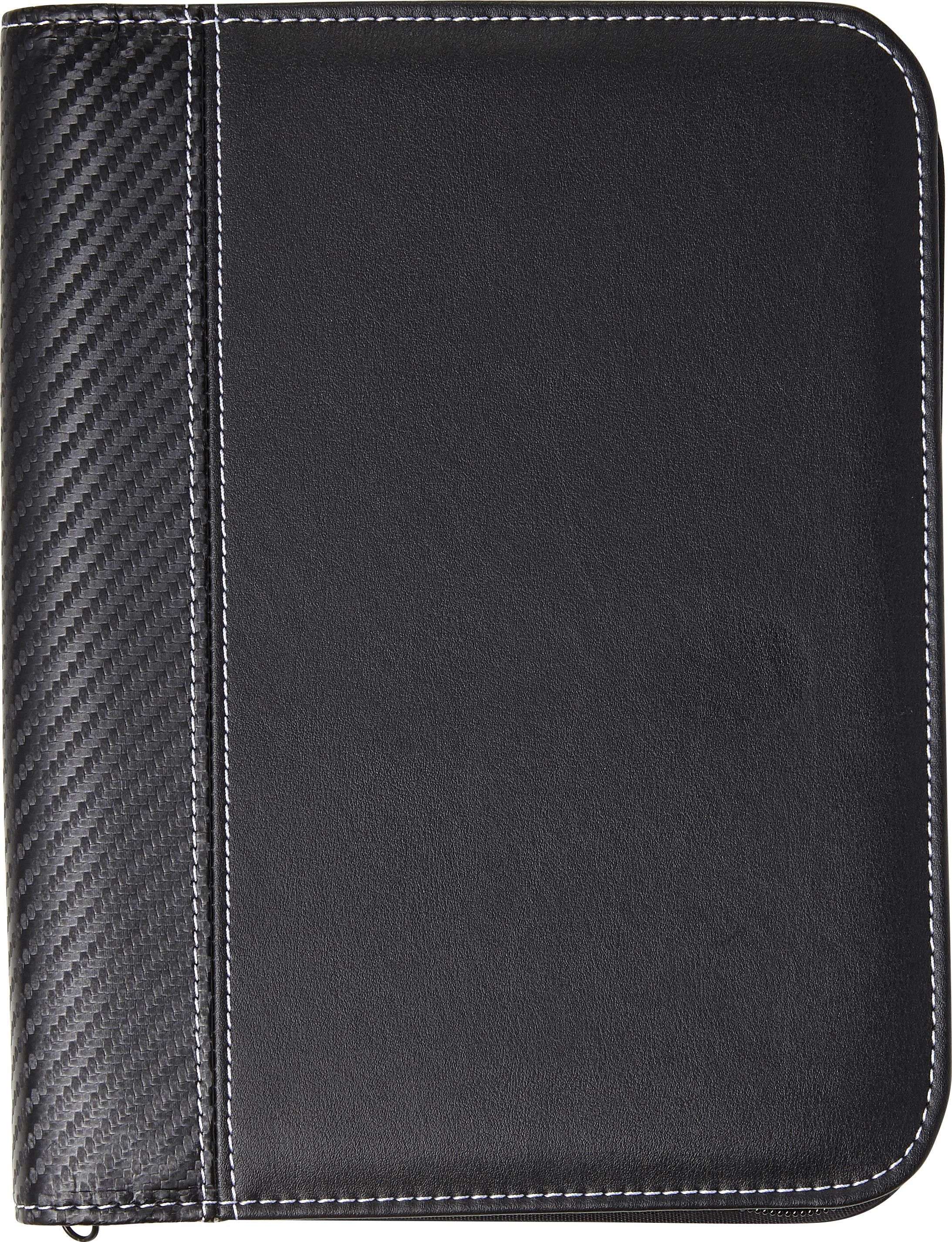 Portadocumenti formato +/- A5, rivestimento interno in microfibra, passante per penna elasticizzato (penna non inclusa), blocco con fogli a righe, 6 tasche interne, chiusura lampo, in PU