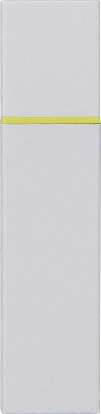 Evidenziatore in ABS riciclato, corpo bianco e dettaglio colorato, chiusura a scatto e garanzia di 2 anni contro l’essiccazione, presenta logo "ABS riciclato"