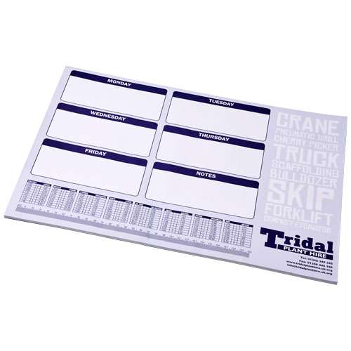 Blocco note Desk-Mate® di colore bianco e formato A2 in carta da 80 g/m2. Stampa full color disponibile su ciascun foglio. Disponibile in 2 versioni (25/50 fogli).