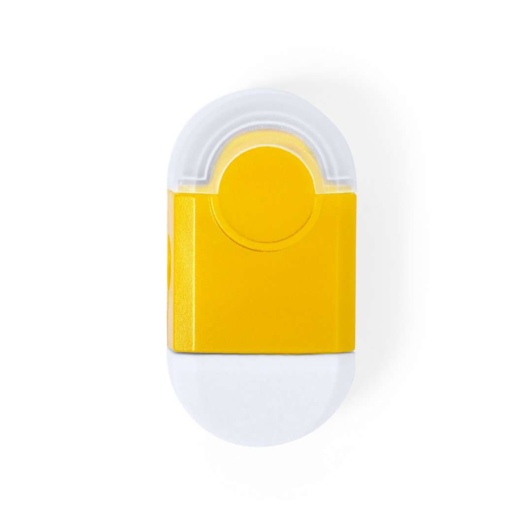 Set di gomme e temperamatite in colori vivaci. Vano rifiuti con cappuccio trasparente
