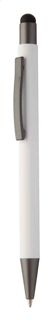 Penna a sfera in alluminio con finitura gommata, gommino capacitivo e refill blu.
