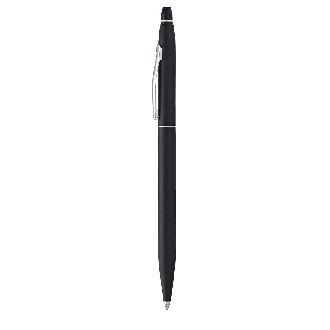 Penna Cross Classik Click , che combina l'iconica silhouette Cross con un veloce meccanismo a scatto retrattile e un fusto di metallo liscio. Cartuccia Jumbo con inchiostro nero. Confezionata in un'elegante custodia nera individuale con logo Cross e fodera in morbida pelle scamosciata abbinata.