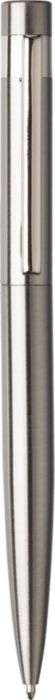 Penna a sfera in acciaio inox riciclato, meccanismo a rotazione, include logo “acciaio inox riciclato” sul retro, custodia singola in carta kraft, refill blu