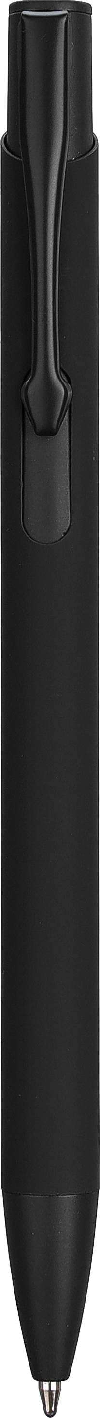 Penna a sfera in alluminio riciclato, rivestimento gommato sul corpo, clip in metallo, punta plastica e pulsante in tinta, lunghezza di scrittura di circa 800 metri, logo 'alluminio riciclato' inciso, refill blu