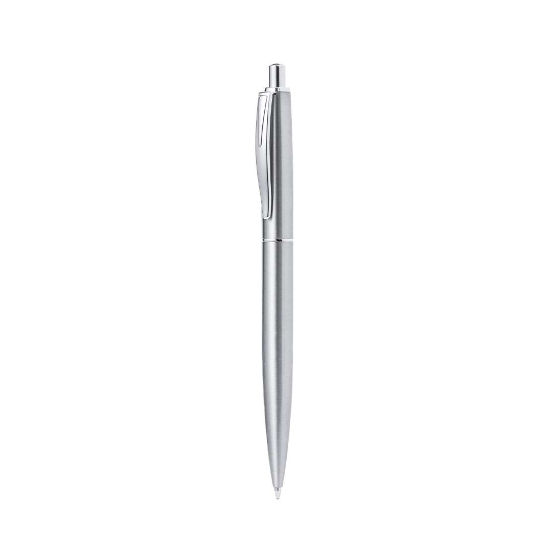 Raffinata penna in Acciaio Inox Riciclato con meccanismo a pulsante. Robusto fusto in Acciaio Inox Riciclato con finitura opaca e clip in metallo. Con pulsante retrattile, inchiostro blu e caricamento jumbo. Presentate singolarmente in un'elegante scatola di sughero.L'acciaio è uno dei materiali più ricercati e si trova praticamente ovunque, dai prodotti di uso quotidiano alle grandi costruzioni. Le sue innumerevoli proprietà, tra cui la durata e l'alto grado di riutilizzabilità, lo rendono un'alternativa molto apprezzata per le soluzioni di sostenibilità. Opportunamente trattato, consente di ottenere nuove risorse di uso infinito.