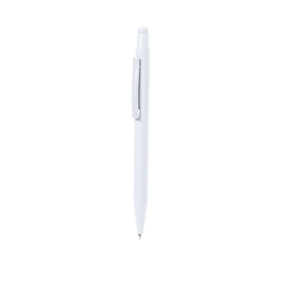 Penna a sfera con puntatore realizzata in alluminio. Con meccanismo a pulsante e clip metallica coordinata con il corpo. Corpo con finitura in gomma, progettata specificamente per marcatura laser. Con cartuccia jumbo e in inchiostro blu.