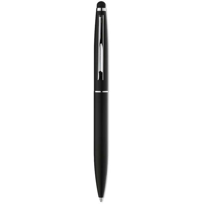 Penna a sfera in alluminio con meccanismo twist, finitura opaca e punta touch. Refill blu.
