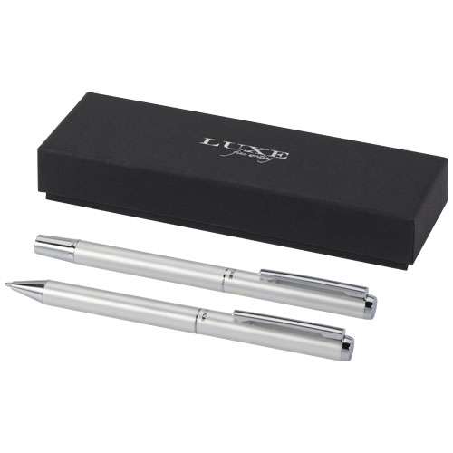 Set regalo con penna a sfera e penna roller in alluminio riciclato Lucetto (inchiostro nero)