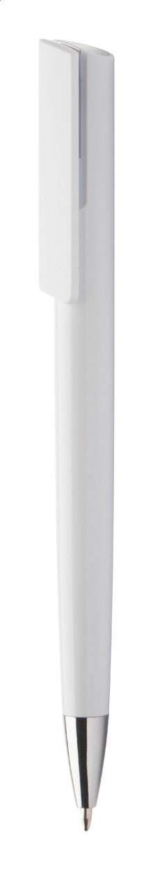 Penna a sfera in plastica con refill blu, punta e terminale cromati.