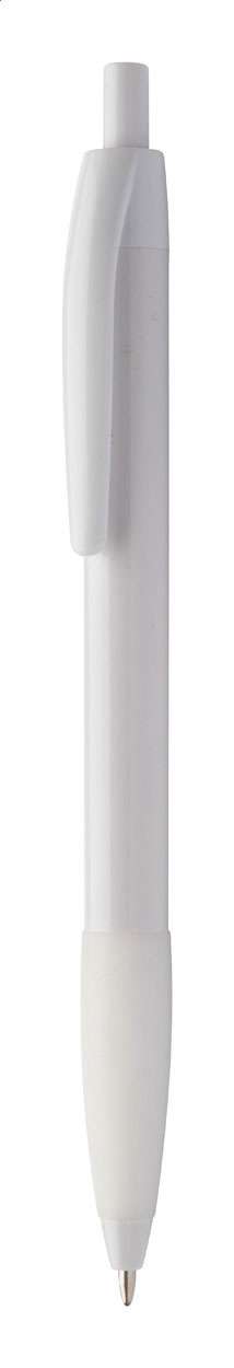 Penna a sfera in plastica con impugnatura in gomma coordinata. Fornita con refill blu.