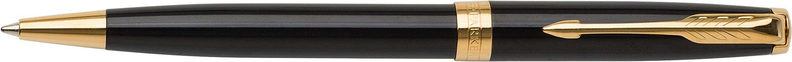Parker, penna a sfera Sonnet in acciaio inossidabile e ottone laccato, finiture color oro, meccanismo a rotazione, refill nero, elegante confezione regalo Parker inclusa