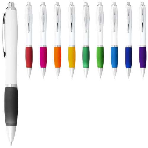 Penna a sfera con fusto bianco e impugnatura colorata Nash (inchiostro blu)