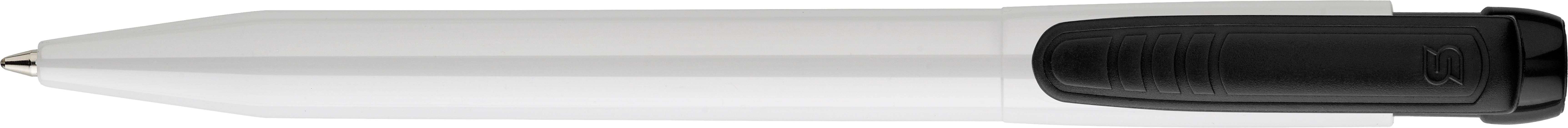 Stilolinea, penna a sfera in plastica, fusto bianco, componenti colorati, clip grande, refill blu jumbo. Fornito del certificato German Dokumental Ink.