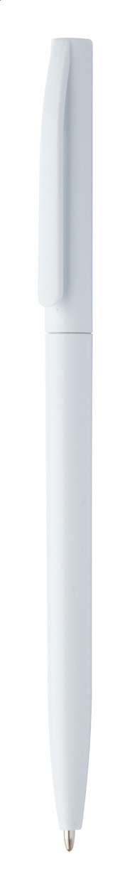 Penna a sfera in plastica con meccanismo a rotazione e refill blu.