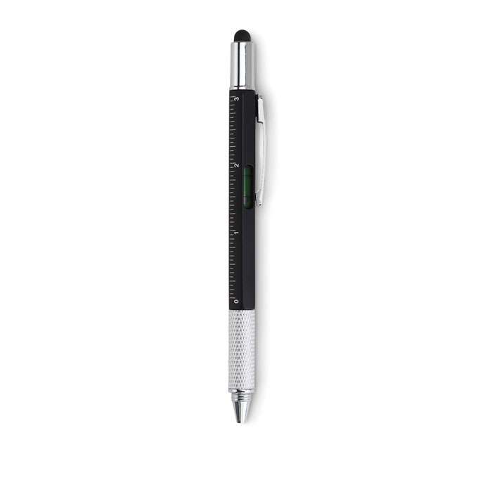 Penna in ABS con righello, livella, cacciavite e punta touch. Refill nero.