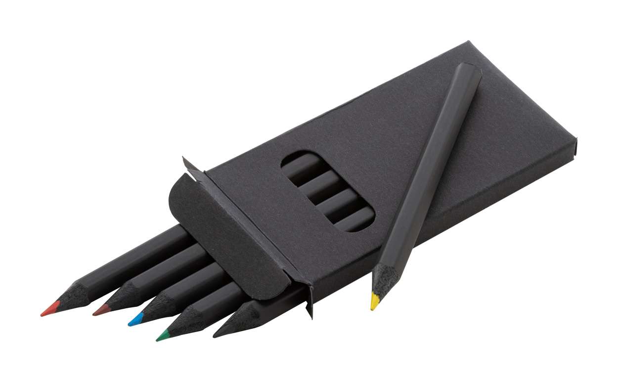Set di 6 matite in legno nero contenute in una scatola di cartoncino nero.